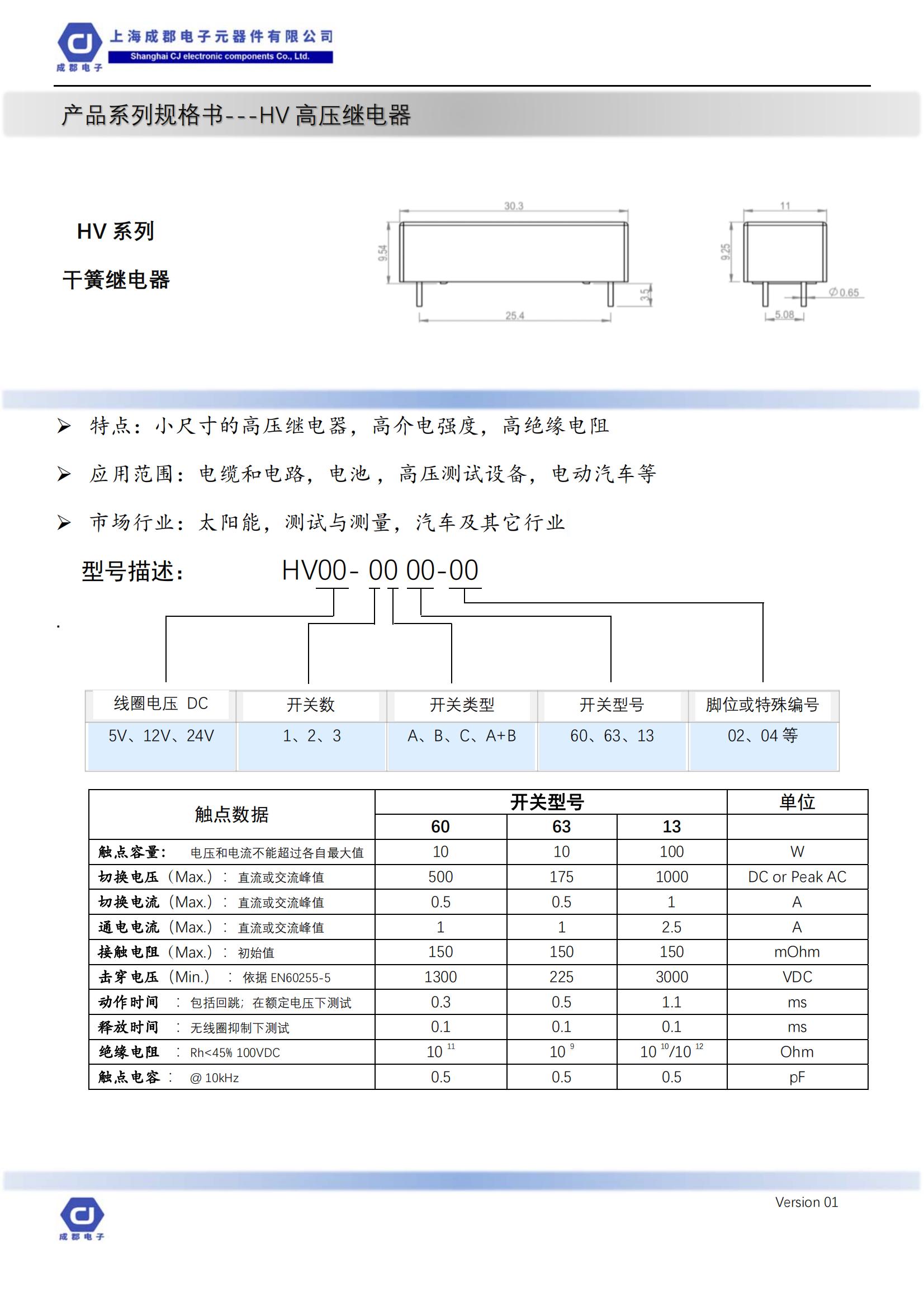 HV系列干簧继电器